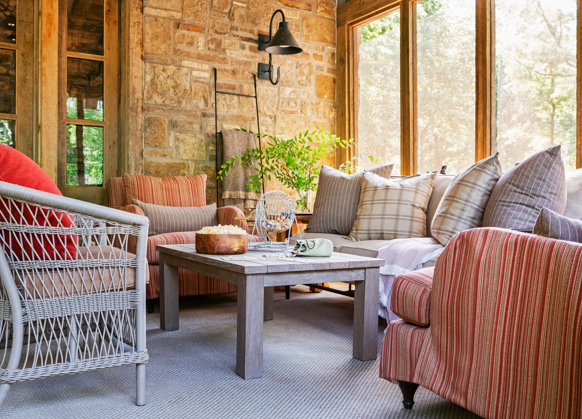 A spacious 14’ x 20’ screened porch extends the living area in each cabin.