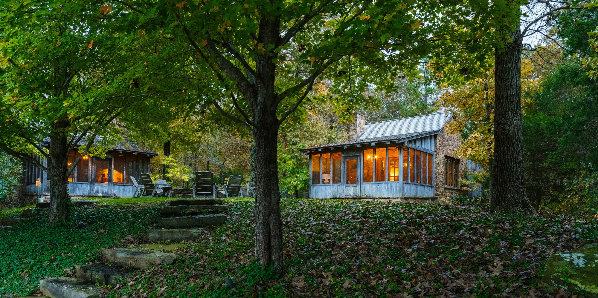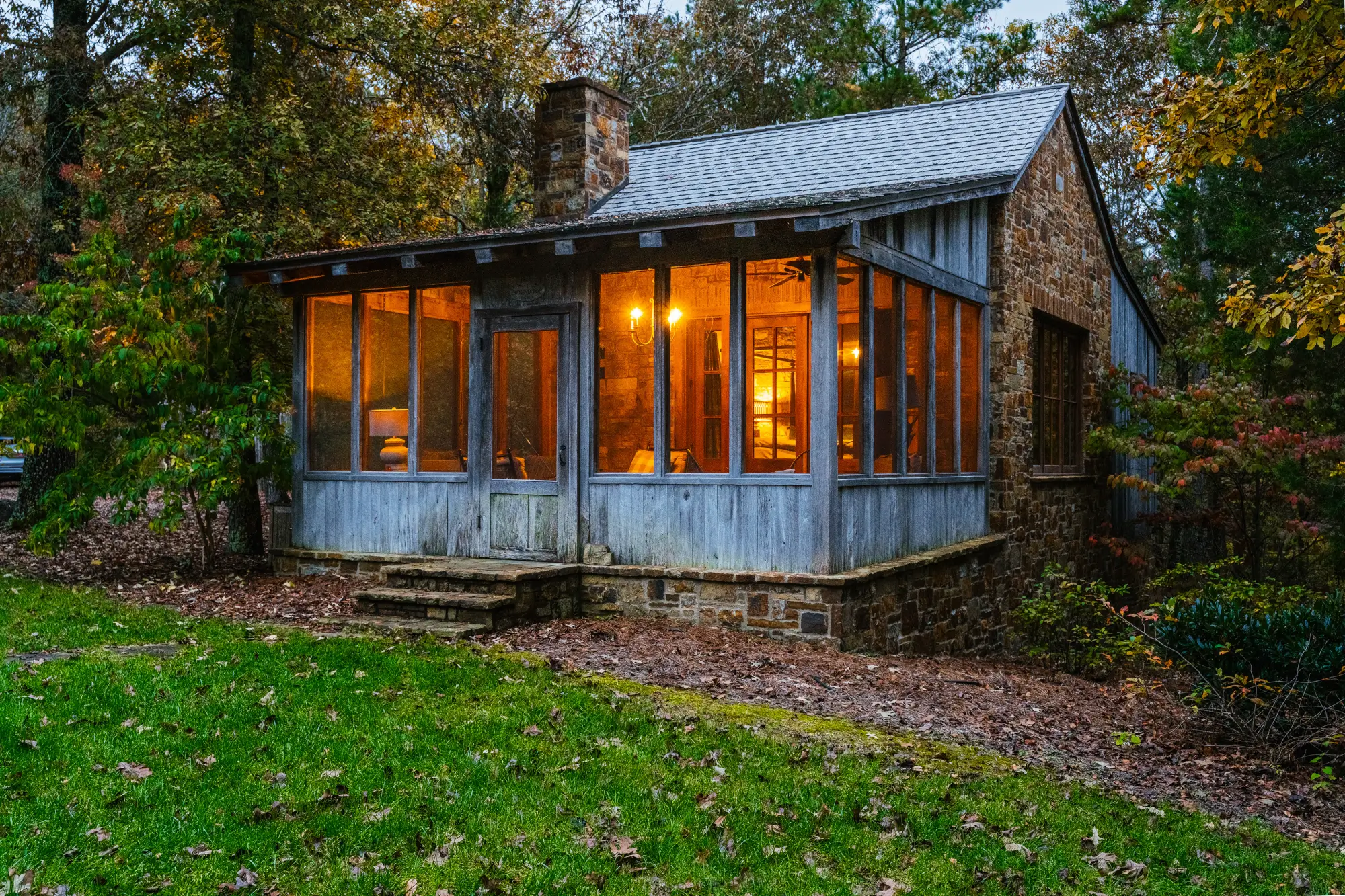 Designed by Tony Martin Inc., each of the identical cabins offers approximately 563 square feet of heated and cooled living space. The layout includes a single bedroom with a cozy stone fireplace, one bathroom, and a convenient coffee bar equipped with a microwave and beverage refrigerator.